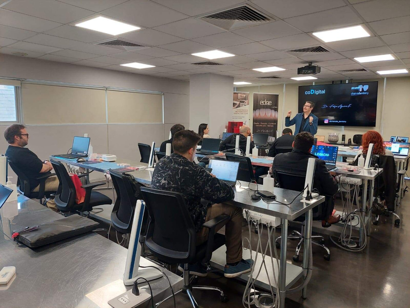 Hands-on en modelos/cabezas fantomas y en algunos cursos, pacientes supervisados.