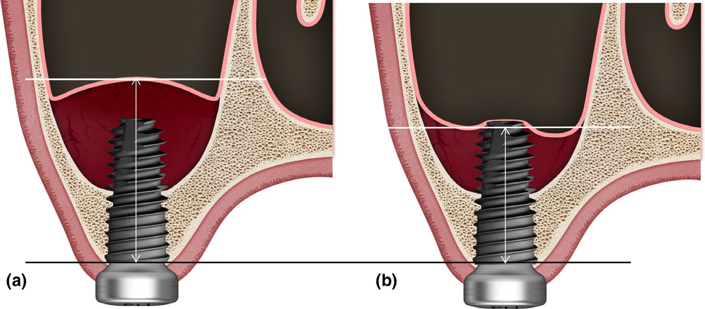 Methods: Dental implants were placed after hydraulic transcrestal sinus lifting and